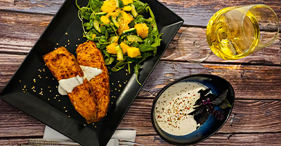 • Tempura ai pistacchi di verdure di stagione con salsa dolce piccante