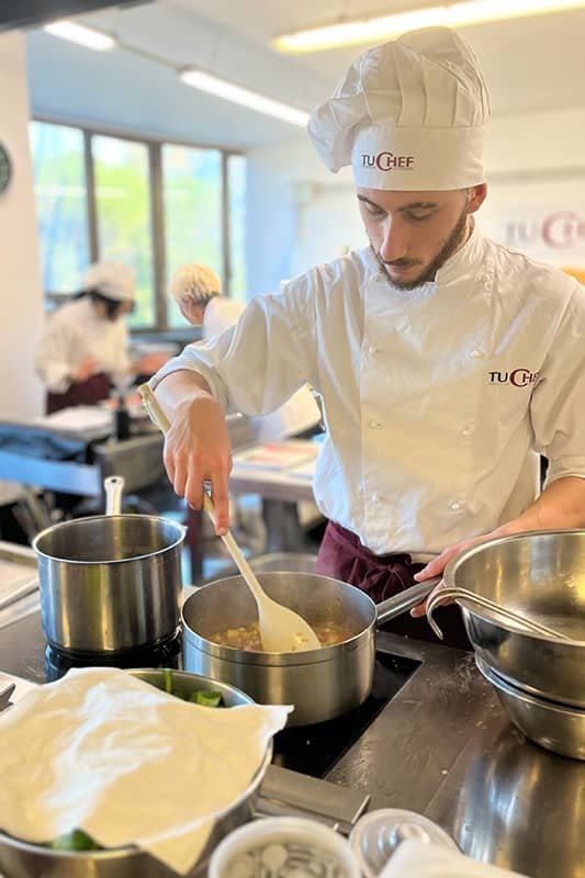 Scegliendo la scuola di cucina TuChef potrai accedere ad un corso esclusivo di cucina professionale che ti permetterà di frequentare lezioni pratiche con ingredienti freschi e di qualità, acquisire tecniche professionali per ogni tipo di cucina, stage in ristoranti rinomati per mettere in pratica quanto appreso, un certificato di qualifica che attestino le tue nuove competenze e attestato HACCP. Non importa se tu sia un principiante o che abbia esperienza: il nostro programma didattico approfondito è pensato per tutti, con un approccio pratico e concreto che ti permetterà di crescere velocemente nel settore.