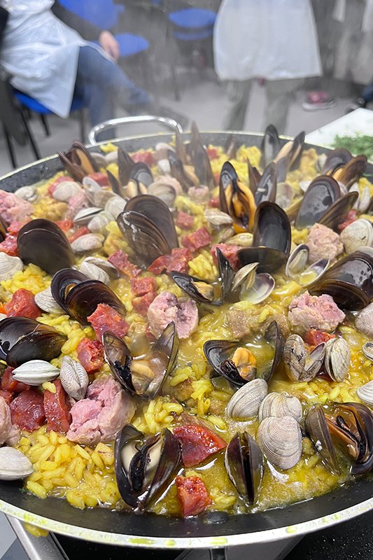 Paella de alcachofas bahas y bacalao
